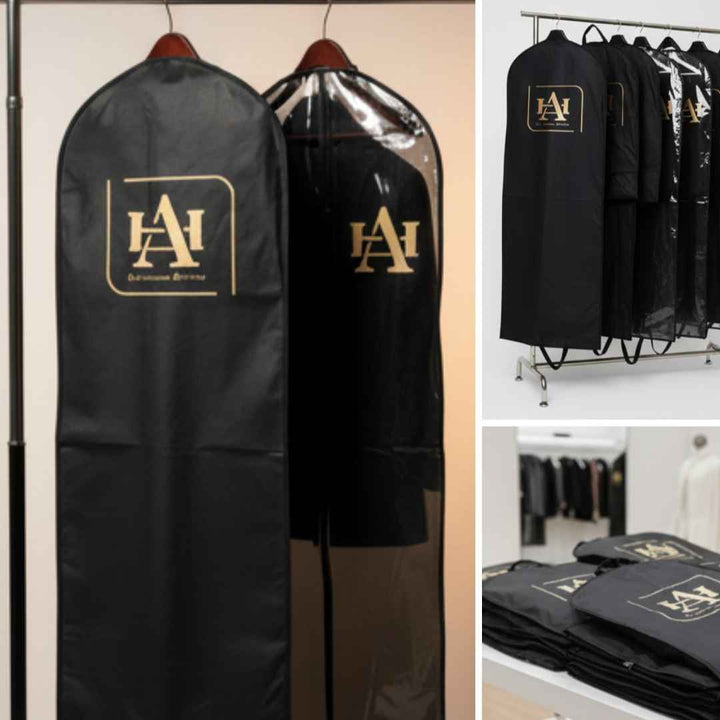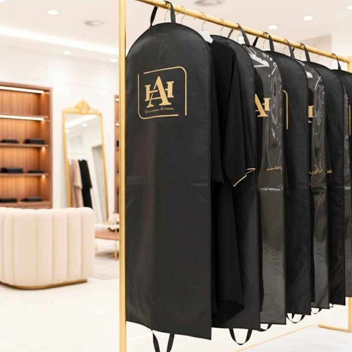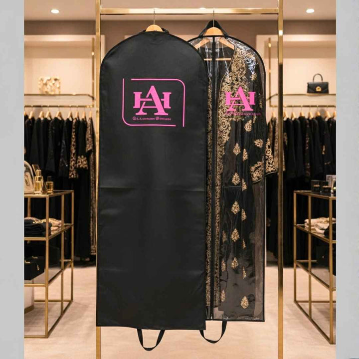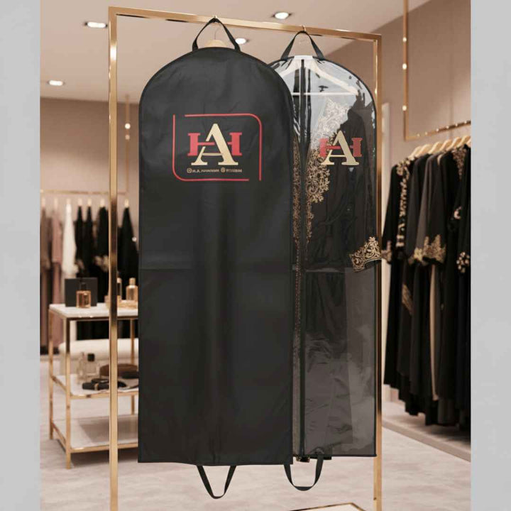 Protect and showcase your long dresses, abayas, or thobes with our Custom Abaya Cover, designed for both personal storage and business display. Crafted with high-quality materials and customizable features, this cover combines practicality with branding and style, making it ideal for boutiques, shops, and individuals who value elegance and protection.