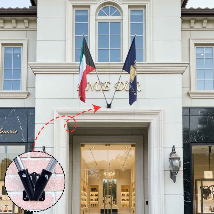 V-Shaped Bracket Design – Holds two flags simultaneously for maximum display.