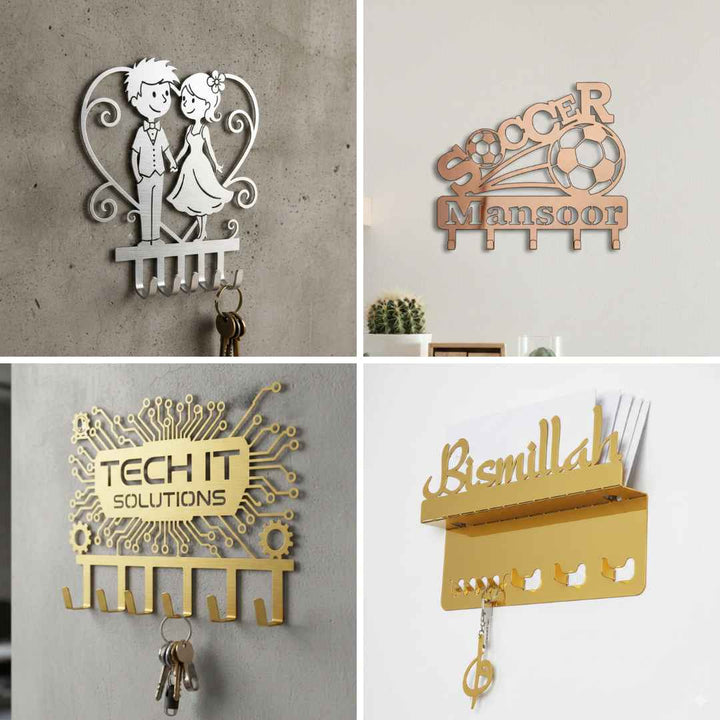 Karyan Art's "Custom Metal Key Hangers" are a stylish and useful way to keep your keys organized and add a touch of art to your space. Our key hangers are made of strong metal and are cut with precise laser-cutting technology. They can be used at home or at work, and they can be made to fit your style. These versatile pieces combine function with personalized style, making them perfect for anyone who wants a classy way to keep their keys in order.