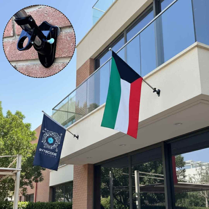 Karyan Art introduces Custom Wall Mount Flags, a premium solution for displaying your country flag, brand identity, or personalized design with style and pride. Made with a durable metal pole (150 cm) and strong flag brackets, these flags are designed for long-lasting outdoor use in homes, offices, shops, and commercial spaces.