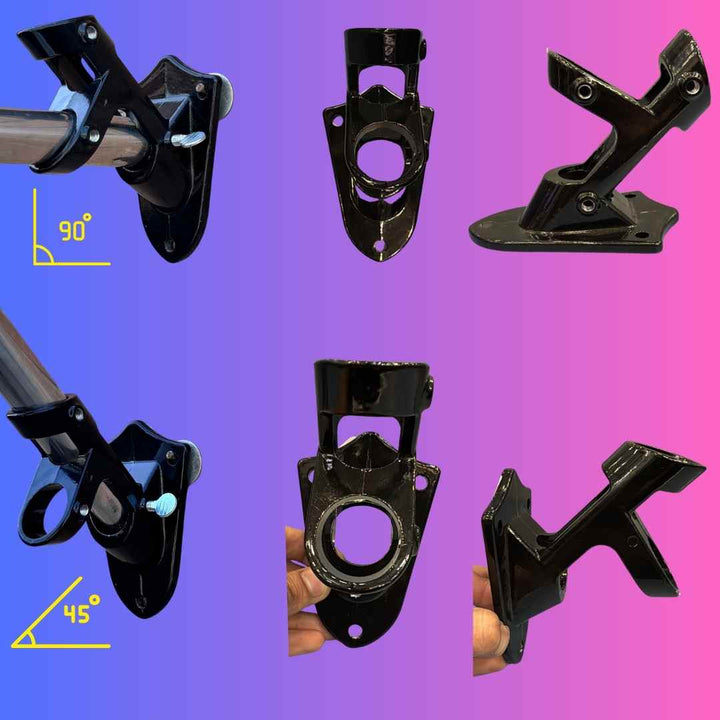 2-in-1 Flag Bracket – Available in Black, supports 45° and 90° fixed angles.