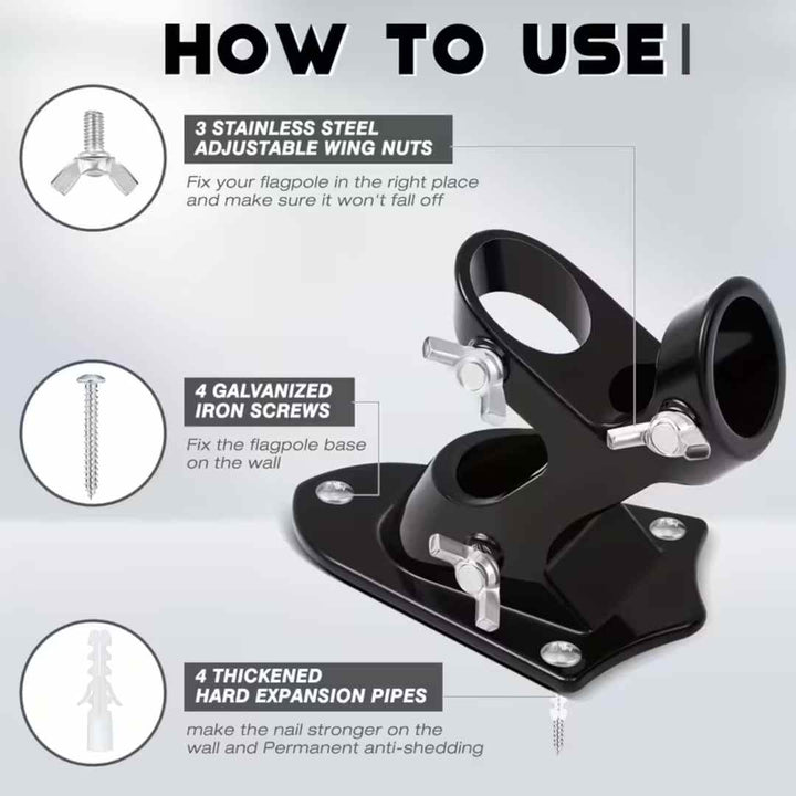 Adjustable Flag Holder – Available in Black or White, flexible to adjust flag angles.