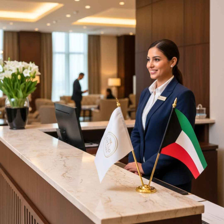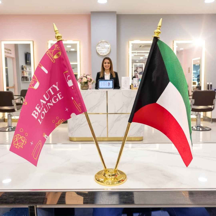 With unparalleled craftsmanship and customisation options, our table flag printing service delivers both style and use. They offer a refined way to present your brand or personal aesthetic with sophistication. We are providing best quality desk flags with fast delivery services in kuwait and all GCC.