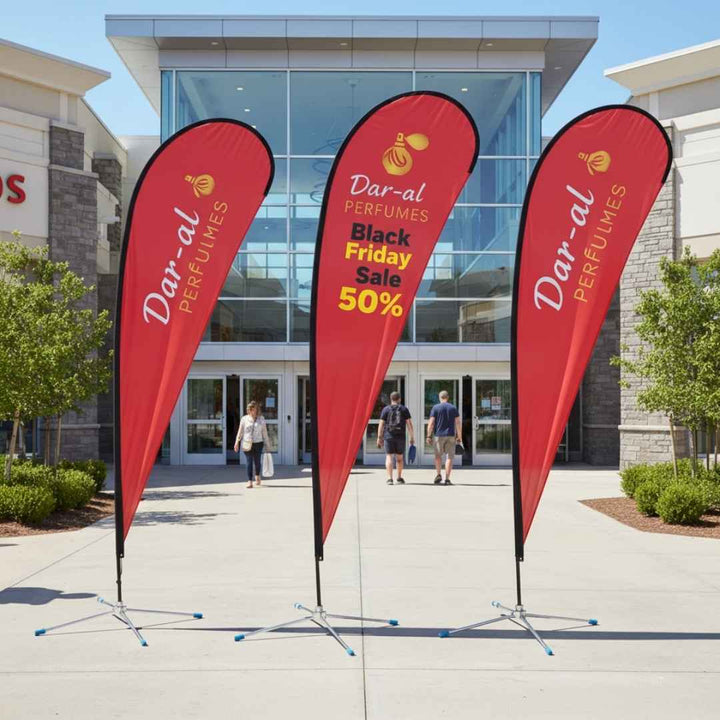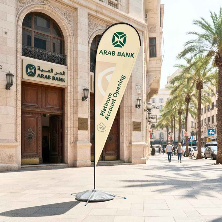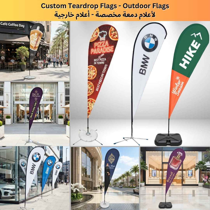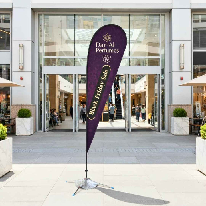 اجذب الانتباه وزود من وضوح علامتك التجارية مع علم دمعة مخصص، وهو حل ترويجي خارجي مثالي يهدف لترك انطباع دائم. مع طباعة ملونة وزاهية، وهيكل متين، وخيارات مرنة، يعتبر هذا العلم مناسبًا للأعمال، والفعاليات، والمنظمات التي تسعى لترويج قوي في الهواء الطلق.