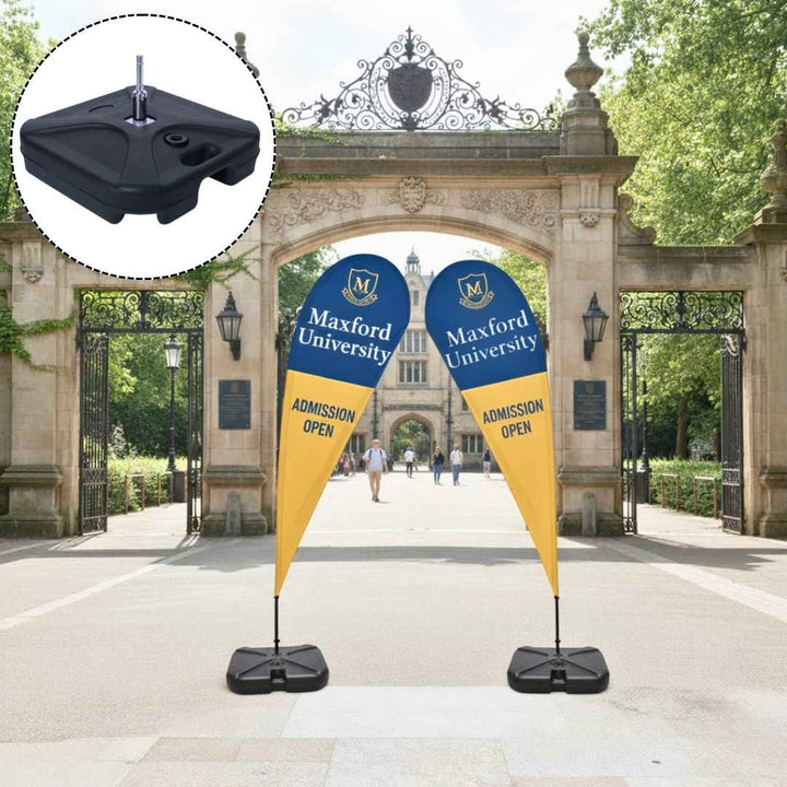 - الطقم الكامل: يشمل عمود علم قوي، قاعدة عرض، حقائب مائية (للثبات الإضافي)، علم عالي الجودة، وحقيبة حمل مريحة لنقله بسهولة.