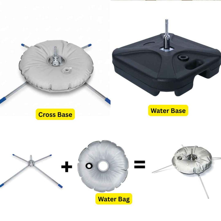 - خيار قاعدة الماء: متوفر قاعدة مائية إضافية، موصى بها لثبات أفضل في الأيام العاصفة، ويزاد على السعر بشكل منفصل.