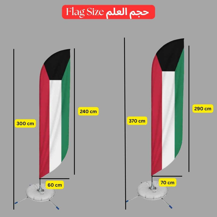 • علم بسياج ارتفاعه 340 سم مع علم بقياس 240×70 سم (الطول × العرض).