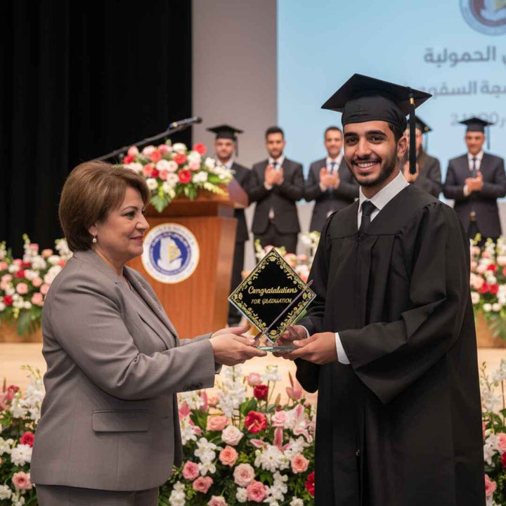 احتفل بالنجاح وكتب إنجازات الآخرين مع لوحة زجاجية مخصصة، فهي جائزة فريدة، ومرنة، ومصممة لتترك أثرًا دائمًا، وتعكس روح التميز.